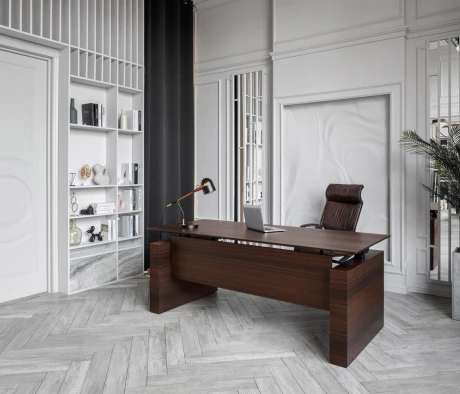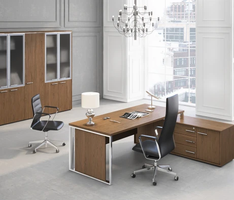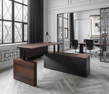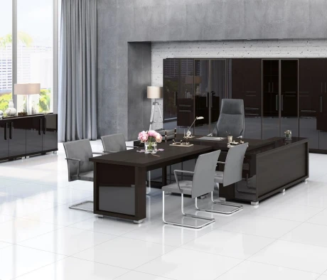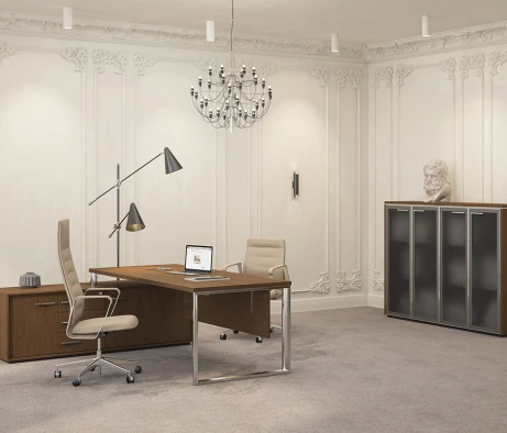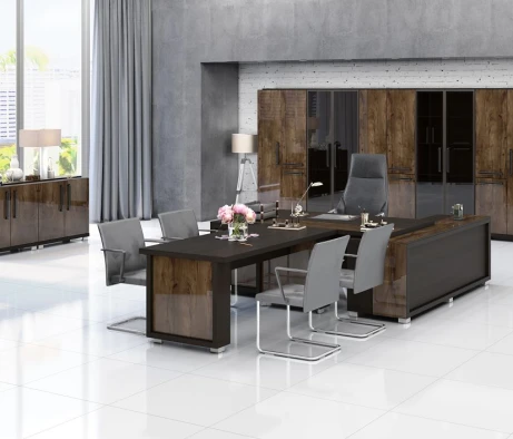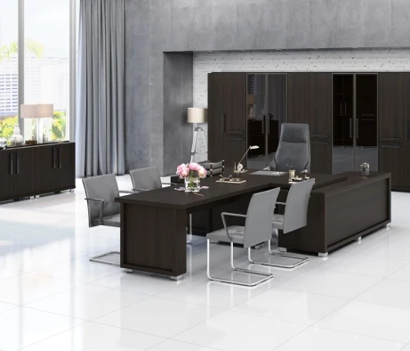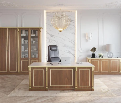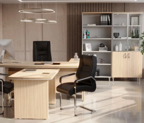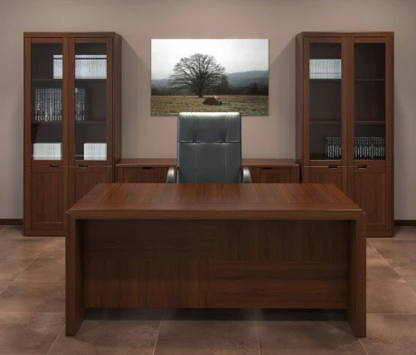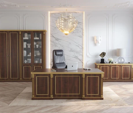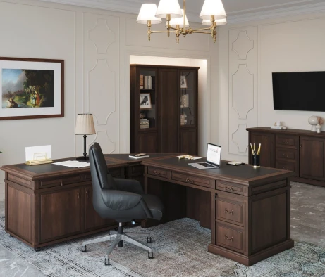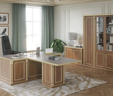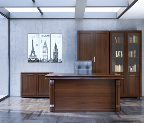 Остановился на этом варианте кабинета руководителя, долго думал какой взять. Наконец то дождались доставку, она была действительно долгой, но ничего, быстро собрали мебель зато. Прежде всего понравилось как мебель гармонирует с интерьером, как будто всю жизнь здесь стояла. Определенно это плюс, к качеству вопросов нет, отечественное производство на высшем уровне, спасибо!